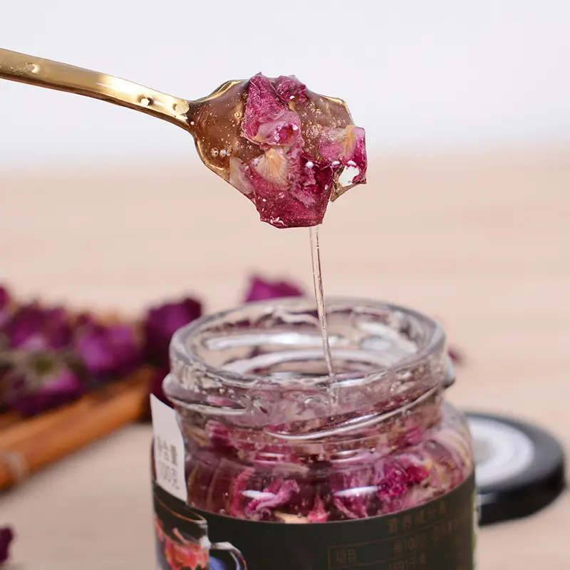 平阴玫瑰膏是以平阴产玫瑰花的花瓣为主要原料,选特别纯净的土蜂蜜经过2个月的常温发酵后腌制而成。没有苦涩味,香甜可口。