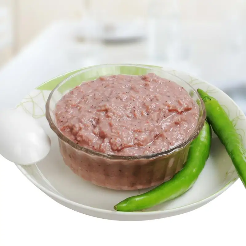 虾酱的形状略似甜酱,分一、二、三等。色红黄鲜明,质细味纯香,盐足,含水分少,具有虾类的特有鲜味,无虫,无臭味者为佳。