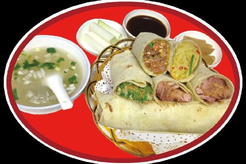 当时潍县赶集的农民吃不上热饭,便有人在集市上架起大铁锅,为路人煮菜热饭,因锅无盖,人们便称之为“朝天锅”。锅内煮着猪下货、肉丸子、豆腐干等。汤沸肉烂,顾客围锅而坐,由掌锅师傅舀上热汤,加点香菜和酱油等,并备有薄面饼,随意自用。然后,根据顾客要求,把肠、肚等切碎,放在饼上,捏上细盐,卷成火筒状,送到顾客手中。因其经济实惠,肉汤随喝随舀,深受群众欢迎。
