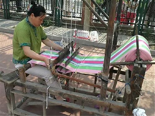 近年来,传统的潍坊老粗布织造多数被色织织锦所替代,更多的突出了色织布的传统工艺特点。色织布纹样的图案意境利用各种色线交织出各种各样的几何形来体现,而不是具体的事物形象。通过抽象图案的平行、重复、连续。间隔、对比等变化,形成特有的节奏和韵律,它反映生活的形式是曲折的、间接的,因而更具有艺术魅力。常用颜色有大红、桃红,湖蓝,靛青、绿、黑、黄、棕,白等。用色也极为大胆,色彩对比强烈,风格鲜艳亮丽,体现了潍坊人豪放爽明的性格。