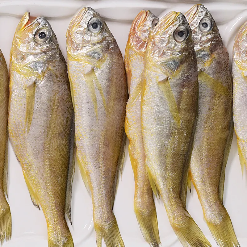 小黄鱼又名小鲜、大眼、花色、小黄瓜、古鱼、黄鳞鱼、小春色、金龙、厚鳞仔,也叫“黄花鱼”、“小黄花”。体小而鳞片大,嘴尖,体形似大黄鱼,但头较长,眼较小,鳞片较大,尾柄短而宽,椎骨28~30块。耳石较大。体长约20余厘米。体背灰褐色,腹部金黄色。为近海底层结群性洄游鱼类,栖息于烟台市渤海海域泥质或泥沙底质的海区。产卵场在沿岸海区水深10~25米,越冬场一般为40~80米,鱼群有明显的垂直移动现象,黄昏时上升,黎明下降,白昼栖息于底层或近底层。其肉质鲜嫩,营养丰富,是优质食用鱼,也是婴幼儿及病后体虚者的滋补和食疗佳品。