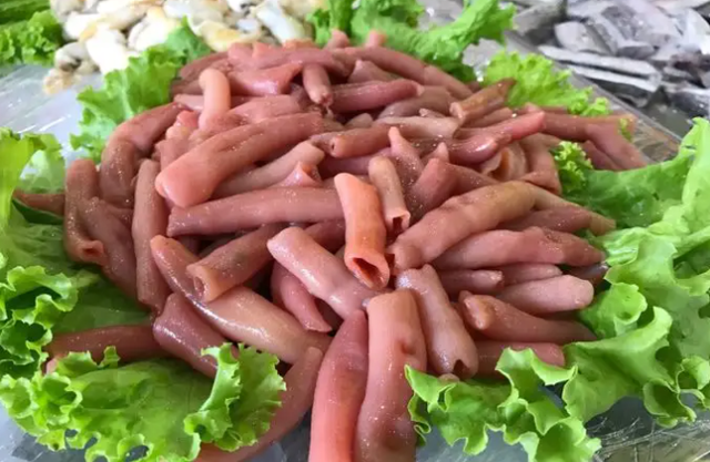 烟台海肠肉质细嫩,口感柔滑,食味鲜美,富含多种矿物质,营养丰富,是高蛋白低脂肪的海鲜佳品。烟台海肠鲜品每百克含蛋白质≥9.5克、脂肪≤0.25克、钙≥160毫克,每千克含硒≥2.0毫克。