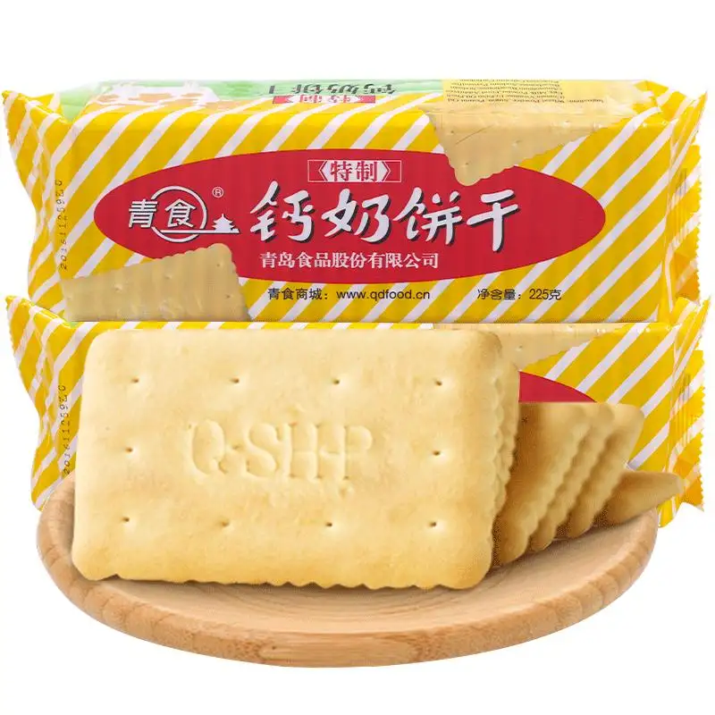 青岛钙奶饼干,又名青食钙奶饼干,青岛市著名特产。因主产于青岛市市南区得名。为18年前十朵金花之一,在山东省,至少四代孩子是伴着青岛钙奶饼干长大。1961年国家暂时困难,全国处于“贫血”状态,大人为了果腹“以瓜代菜”。但婴幼儿营养欠缺,佝偻病、小儿贫血症患儿增多,根据婴儿发育所需营养研究原料配方,“青食”牌钙奶饼干脱颖而出,成为新型儿童营养饼干。