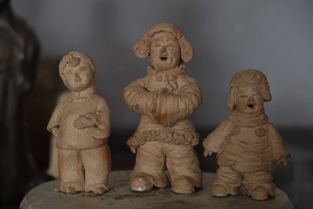 糨模人泥塑极具传统性,作品分传统耍货及写实性泥塑两种。耍货一般以生土的粉彩泥塑为主,如泥叫虎、不倒翁、摇啦机、泥造像等;写实性泥塑则以烧制的素胎泥塑为主,兼有粉彩装饰,题材多数是生活中的人物,尤其注重刻画人物的面部表情,作品多美颜带笑,生动传神。
