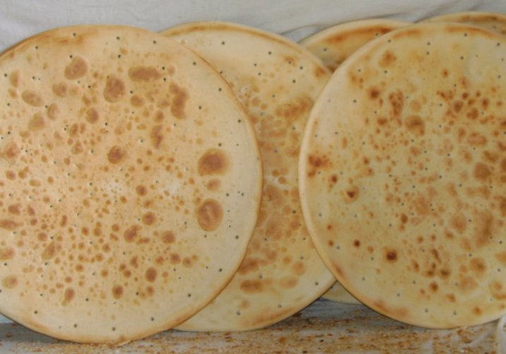 高集锅饼纯手工制作,用硬果木烧制,口感酥、香、脆。制作时,首先用冯家院里的井水将上好的白面加入“面引子”和面,待面醒好后,由壮汉用碗口粗的木棍在“压面石”上杠面,经过反复擀平,即压成直径55厘米,厚约2厘米的圆形锅饼,然后用花案板在擀平饼压花。烙饼用祖上留下的专用平底锅,将制作好的锅饼置于其中,锅盖采用高粱秆制作的“盖顶”便于透气,文火反复烫烙直至金黄色,一个外脆内软硬而不艮、煮而不粘的大锅饼就做成了。
