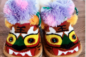 临朐虎头鞋,临朐县著名民间工艺品,因鞋头呈虎头模样,故称虎头鞋。 虎头鞋做工复杂,仅虎头上就需用刺绣、拨花、打籽等多种针法。鞋面的颜色以红、黄为主,虎嘴、眉毛、...