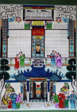 吕村年画融版画、传统国画和民间壁画技法于一体,经过了几代人探索和潜心研磨,形成了今天勾里填色、水墨色彩交融的工笔年画风格,为百姓喜闻乐见,久传不衰。