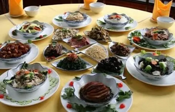 药膳宴主要菜点有灵芝蒸鸡、灵芝蒸鸭、何首乌炖羊肉、四叶参蒸鸡、冰糖黄精汤、银杏猪肘、杏仁豆腐等。
