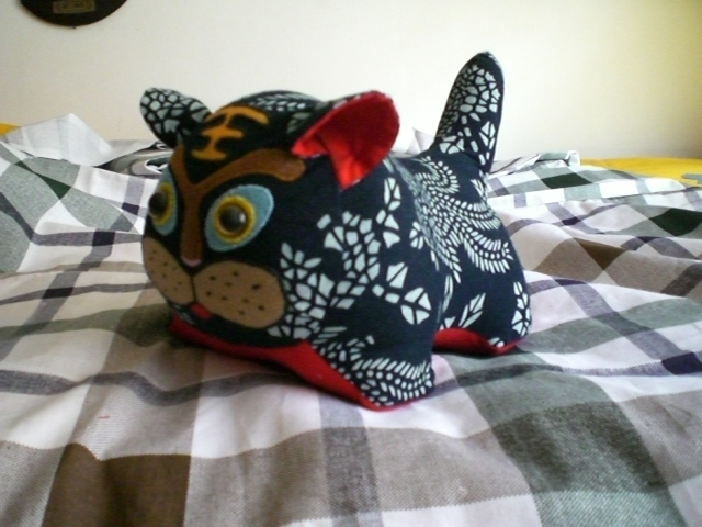泰安布老虎以布块为面,荞麦皮、锯末为芯,再用各种花纹图案,经过民间艺人巧手装扮一番,酷似一只既乖巧又勇猛的卧虎。