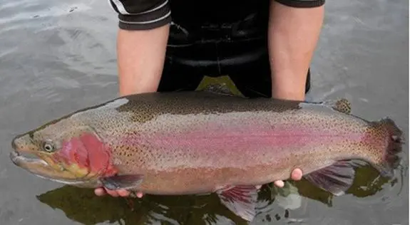 虹鳟鱼被誉为“水中人参”,属鲱形目、鲑科。又称瀑布鱼、七色鱼。体上布有小黑斑,体侧有一红色带,如同彩虹,因此得名“虹鳟”。以水生昆虫及幼虫、甲壳类、小鱼虾、蝌蚪和掉入水中的陆生昆虫为食。