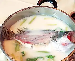 沂源羊奶火锅的汤料为山羊奶,多配以羊肉片、菇菌、水鱼、东星斑等火锅料。当羊奶沸腾至逐渐起“酥皮”时,夹起一块白皙的鱼肉,上面沾满半固体半液体状的羊奶,尝一口,感觉羊奶的营养都融化在口中。鱼肉清甜,羊奶醇香。