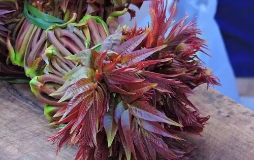 博兴香椿被称为“树上蔬菜”,是香椿树的嫩芽。每年春季谷雨前后,香椿发的嫩芽可做成各种菜肴。它不仅营养丰富,且具有较高的药用价值。香椿叶厚芽嫩,绿叶红边,犹如玛瑙、翡翠,香味浓郁,营养之丰富远高于其它蔬菜,为宴宾之名贵佳肴。