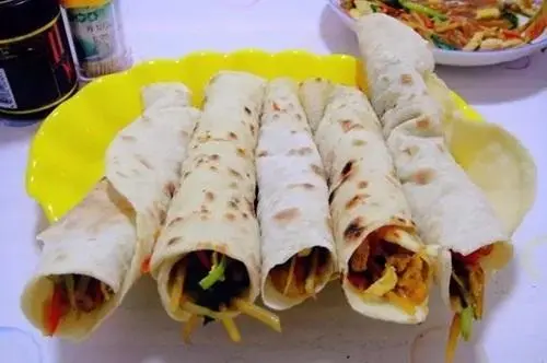 佘家锅子饼是当地的主食之一,口感香、酥,生产工艺精细。食之酥而不硬、香而不腻、味鲜可口、老少咸宜而久负盛名。主要以面粉、白菜、豆芽、精猪肉、鸡蛋、尖辣椒、食盐、甜面酱、味精、白糖、香油等为主要原料。制作时,用专用平底锅2口,先用水将面粉和成劲道的面团,再以50克重的面团擀成薄饼,在平锅里用干柴火,文火烙熟后,饼皮摞在一起备用。同时另一口平锅炒菜,为保证锅子饼的口味,柴火最好是紫穗槐条、干树枝或棉花柴等作物秸秆,尽量不用煤、电或天然气。还可以根据自己的口味随意卷馅,如:鸡蛋、精肉、大肠、虾仁等,饼薄如纸、香而不腻、味鲜可口,令人回味无穷,余味悠长。现吃现做,饼皮薄而筋道,用饼皮裹上炒好的菜,卷成圆柱形,就是远近有名的“佘家锅子饼”。 此饼以饼中卷馅的方式:融饼和包子的优点为一体,成为一种传1具特色的主食。