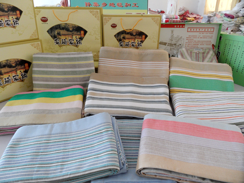 潍坊老粗布是纯棉手工制作,手感舒适、无静电、吸湿性能好。随着近年来返朴归真、崇尚自然潮流的兴起,土布加工制作的床单、被罩、服装等制品,越来越受到世人的青睐。