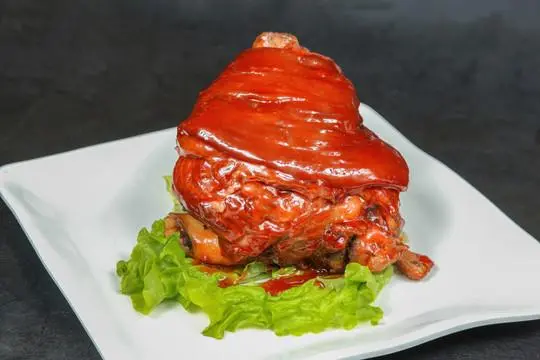 红扒肘子,鲁菜传统名菜,昌邑市著名美食特产,因源发和传承于昌邑市得名。
