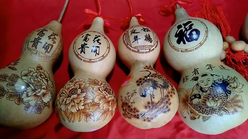 葫芦本色就有古画的基调,在上面临募出名家的国画作品,线条流畅准确、形态栩栩如生、意幸免幽深高远。给人以耳目一新、不媚不俗的感觉。烙画艺术使葫芦由农家瓜果登上了艺术殿堂,成为一种集拙朴自然和高雅精美为一体的传统民间艺术品,具有很高的欣赏价值和收藏价值。