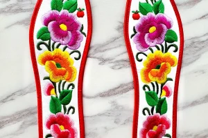 高密绣花鞋垫,高密市著名传统手绣工艺品特产。因主要传承于高密市得名。 高密绣花鞋垫具有吸汗、吸湿、防霉抗菌、透气功能好、弹性强、耐压缩及吸收震荡力、不易变形变薄...