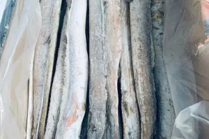 渤海带鱼,渤海湾海域著名海产特产,因主产于烟台市莱山区渤海海域得名。 带鱼,又叫裙带、肥带、油带、牙带鱼等。带鱼的体型侧扁如带,呈银灰色,背鳍及胸鳍浅灰色,带有...