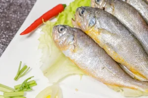 烟台渤海小黄鱼,烟台市渤海海域著名特产。因主产于烟台市莱山区渤海海域得名。 小黄鱼又名小鲜、大眼、花色、小黄瓜、古鱼、黄鳞鱼、小春色、金龙、厚鳞仔,也叫“黄花鱼...