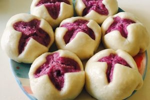 开花大馒头,又名“白银如意”,指蒸熟的馒头个个似白牡丹,故名“开花馒头”,它是烟台传统面食品种。色泽洁白,香甜松软,顶部开花,形似白牡丹。 相传,开花馒头是由元...