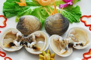 紫石房蛤,俗名天鹅蛋,是一种大型经济贝类,烟台沿海名贵海产品之一。莱山区为主产区之一,故得名。 贝壳坚厚,壳体略呈卵圆形,壳表黄褐色,壳内面暗紫色并泛珍珠光泽;...