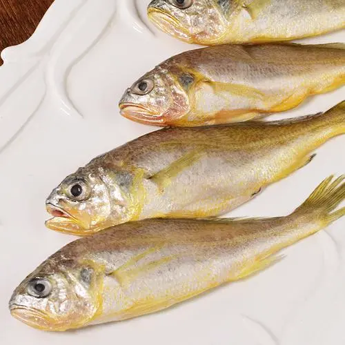 小黄鱼又名小鲜、大眼、花色、小黄瓜、古鱼、黄鳞鱼、小春色、金龙、厚鳞仔,也叫“黄花鱼”、“小黄花”。体小而鳞片大,嘴尖,体形似大黄鱼,但头较长,眼较小,鳞片较大,尾柄短而宽,椎骨28~30块。耳石较大。体长约20余厘米。体背灰褐色,腹部金黄色。为近海底层结群性洄游鱼类,栖息于烟台市渤海海域泥质或泥沙底质的海区。产卵场在沿岸海区水深10~25米,越冬场一般为40~80米,鱼群有明显的垂直移动现象,黄昏时上升,黎明下降,白昼栖息于底层或近底层。其肉质鲜嫩,营养丰富,是优质食用鱼,也是婴幼儿及病后体虚者的滋补和食疗佳品。