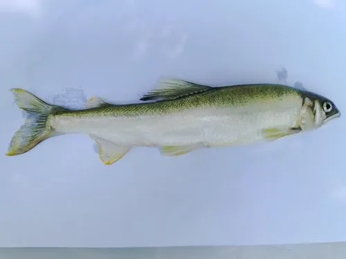 崂山仙胎鱼素有“崂山中华鲟”的美称,于鱼纲,香鱼科。体侧扁,色青黄,长20厘米左右,鳃盖后方有一卵形橙色斑纹,吻端下弯,牙宽,牙宽,截形,有缺刻,有脂鳍,鳞细小。生于山间各水流中。 此鱼肉质鲜嫩,入口清香,嗅起来不像其他鱼类有腥味,却有一种宛如新鲜黄瓜一样的味道。