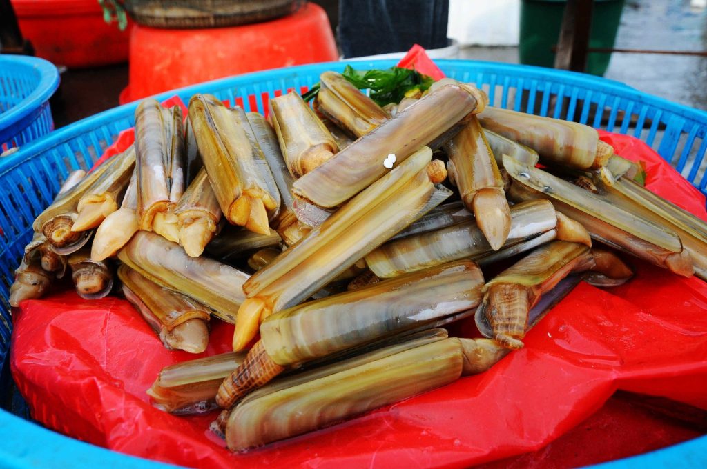 崂山湾竹蛏属贝类,是我国海产珍品之一。因壳薄、味美、肉嫩,营养丰富深受广大消费者欢迎,为我国重要的海产经济贝类之一。当地妇女产后奶水不足,常以蛏子汤催乳。