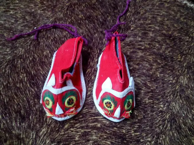 现在人们仍认为虎头鞋能除恶魔保平安,因此都要给孩子做双虎头鞋穿。在一些地区还讲究穿三双虎头鞋,并保留让姑姑做三双不同颜色的虎头鞋送侄儿的风俗。俗语有;“头双蓝(取谐音拦,即拦住不夭折),二双红(红能辟邪,可以免灾),二双紫落成(意即孩子在自家长大成人)。”有了蓝、红、紫三双不同颜色的虎头鞋,孩子必会安然无恙!