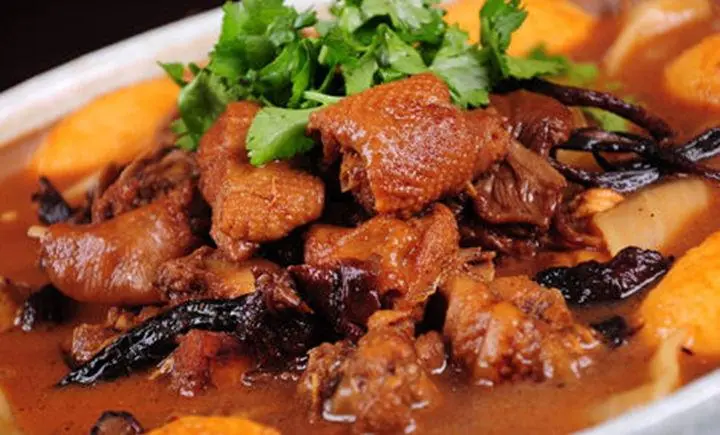 王金亭炖鸡,选用本地农家散养的上等笨公鸡,辅以白芷、丁香、茴香等20余种纯天然中草药香料,添加食用油、盐、酱油、面酱等精制而成。肉质香嫩,味道鲜美,口味纯正,营养丰富,老幼皆宜。