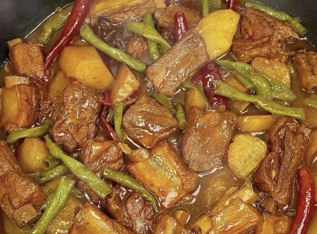 东北乱炖,又名大丰收,是一道东北的传统名菜,素有“大杂烩”之意,即将豆角、土豆、茄子、青椒、番茄、木耳等多种蔬菜,与肉类一同炖至熟即成。