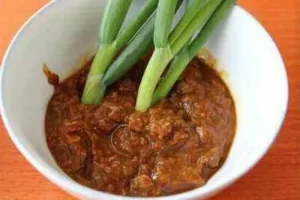 宁津豆酱,又称黄豆酱,宁津县著名特产,因主产于宁津县得名。 宁津豆酱经过大豆除杂、侵渍、蒸熟、混合、冷却、接种、制曲、发酵等环节制作而成,其色泽为红褐色或棕褐色...