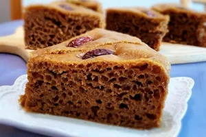 枣发糕,乐陵市特色名吃。因主产于乐陵市得名。 制作时,将玉米面用八成开的水边搅边烫,晾凉后与面粉掺到一起,加入鲜酵母,用温水和成稀面团发酵,然后再掺入黄豆面揉匀...