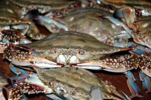 梭子蟹,俗称大蟹子。因背甲隆起三个疣瘤,整体似梭子形,故学名为三疣梭子蟹。东营市东营区著名特产。 莱州湾滩缓波稳,适合蟹子的潜沙习性。东营市境内黄河及其它数条河...