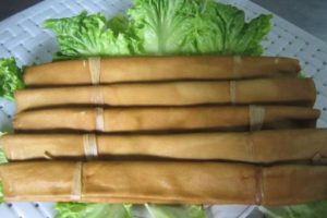 玉皇庙豆腐皮,商河县特色传统美食。因主产于商河县玉皇庙镇得名。 玉皇庙豆腐皮是选用大豆中的地方品种为原料,把黄豆打浆、烧胚、过滤、点浆、舀皮,一锅豆腐皮就得舀7...