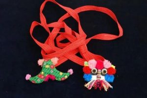 虎头绊子,微山县传统民间工艺品特产,因传承和主产于微山县得名。 虎头袢子是一个正面有一造型夸张的虎头形状的袢带。袢带呈交叉形,袢带上还有两条两米多长、密密衲成的...