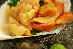 涮赤贝,长岛名菜。因源发并流行于蓬莱区长岛海岛地区得名。 涮赤贝以赤贝为主料,将鲜赤贝肉去边,片除外皮洗净,里肉片成薄片。将芝麻酱、料酒、豆腐乳、韭花酱、酱油、...