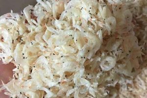 金钩海米,烟台特产之一,也称虾米、干虾仁、海米,为海产白虾、红虾、青虾经加盐蒸煮、干燥、晾晒、脱壳等工序制成的产品。因如舂谷成米,故称海米。又因形似鱼钩,故得名...