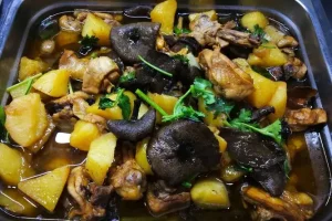 崂山菇炖鸡,是青岛十大代表菜之一。选用崂山蘑菇和本地一年内的小公鸡,用高汤炖制而成。青岛市崂山区著名特色美食特产。 崂山蘑菇又称崂山松菇,生长于崂山落叶松树下,...