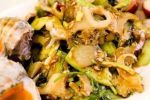 油爆海螺,青岛市十大代表菜之一,是在山东传统名菜,青岛市著名传统美食特产,因原创并主传承于青岛市得名,市北区为主传承地区之一。 油爆海螺是在油爆双脆、油爆肚仁的...