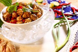 油爆红螺,文登传统特色小吃。文登区特产,因主产于文登区得名。 油爆红螺主要原料为红螺肉、冬笋片二两、冬菇一个切片,葱两根切段,黄酒、盐、菱粉、清汤少许。 制作时...