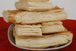 乳山千层饼,乳山市著名传统小吃,因主产于乳山市得名。 乳山千层饼又叫乳山小油饼,是本地常见的一种家庭面食。其特点是层多且薄,柔而不韧,香中带鲜,油而不腻,松软可...