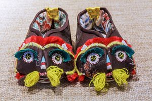 虎头鞋,枣庄市著名传统民间工艺品,因鞋头呈虎头模样,故称虎头鞋。因主传承和主产于枣庄市市中区得名。 虎头鞋做工复杂,仅虎头上就需用刺绣、拨花、打籽等多种针法。鞋...