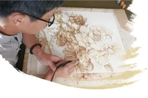 淄川烙画,又称火笔画,中国传统艺术珍品,淄博市著名工艺美术品特产,因传承和主产于淄博市淄川区得名。 淄川区烙画,即用火烧热烙铁在物体上熨出烙痕作画。烙画创作在把...